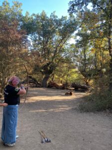 Tras la comida de convivencia, la tarde llevó al grupo a un entorno muy diferente: la actividad “Paleolítico Vivo”, una experiencia que combinó naturaleza, historia y cooperación.