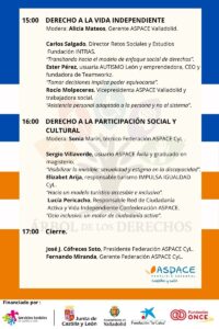 - Derecho a la vida independiente, a través del coloquio sobre autonomía personal, emprendimiento y asistencia personal centrada en la persona.