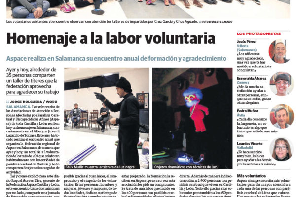 El fin de semana en el Albergue Juvenil Lazarillo de Tormes. El voluntariado cada vez es más valorado por las entidades de parálisis cerebral. Solo el 18% de los españoles realizan actividades de voluntariado, pero casi el 60% de esos voluntarios deciden dedicar su tiempo a las personas con discapacidad. LEER NOTICIA COMPLETA